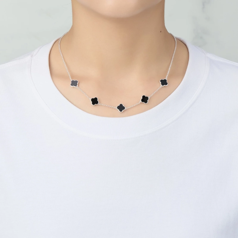 Sterling Silver Black Clover Necklace